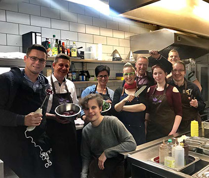 Die gesamte Belegschaft hat mit Pia-Engel australisch gekocht und sich anschließend das kulinarische Ergebnis schmecken lassen.
